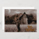 O carinhoso ceifeiro do esqueleto está no campo segurando sua cicatriz enferrujada, atrás dele está um velho, rústico, celeiro angustiado no país. Feliz Dia das Bruxas no canto inferior direito.