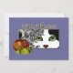 Gato preto de olhos verdes a espreitar atrás de um Art Nouveau floresce completo com sotaque de abóbora e saudação de Halloween. Artista, Margaret Loftin Whiting, estilo clássico.