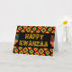 Cartão de saudação KWANZAA FELIZ colorido e vibrante em tons de vermelho, amarelo e verde. O design mostra um padrão de quadrados coloridos e imagens pela metade das velas Kwanzaa Nguzo Saba. Este cartão de Kwanzaa seria um ótimo presente para familiares, amigos e clientes durante a temporada de Kwanzaa. Escolha entre uma ampla seleção de cartões de Kwanzaa, decoração para casa e presentes, criados pela Berean Designs.