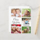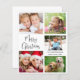 Cartão de colagem de fotos de feriado fácil e econômico. "Feliz Natal" está escrito em um roteiro de na moda e você pode personalizar com 5 fotos, seu nome de família e o ano.