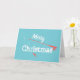Cartão de Boas Festas de Natal da Pesca com Mosca. Cana de pesca com mosca, carretel e anzol com isca. Feliz Natal em letras brancas. Fundo azul turquesa. Perfeito para pescadores com mosca, independentemente de pescando trutas ou achigãs nesta época de Natal!
