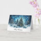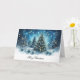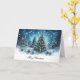 Cartão Feliz Natal Árvores Azuis e Ornamentos