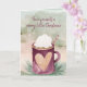 Caneca de chocolate quente de Natal com coração cor-de-rosa e pinheiro em fundo de aquarela abstrato. O texto pode ser editado