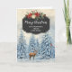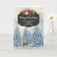 Feliz Natal para a amiga e sua carta de família com a madrugada de inverno floresta e veado de neve.