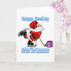 Feliz Natal de Hockey! Papais noeis ao longo do gelo com seu bastão de hóquei e um presente roxo. Legal cartão de Natal para quem ama o passatempo favorito do Canadá!