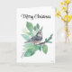 Feliz Natal com pássaro nu pintado de cor d'água com bagas. Arte de Jenn Steffen, o Emporium de Jenn.