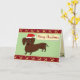 Dachshund preto e tan vestido como o papai noel. Beira bonito do estilo da camisola na parte dianteira e no interior. Este cartão de Natal bonito está vazio no interior assim que você pode personalizá-lo.