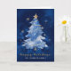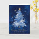 Envie cartões de natal elegantes com este marinho azul de Natal impressionante apresentando uma árvore de Natal aquarela embrulhada em fita de ouro e revestida com uma estrela de ouro. Cercado por delicados flocos de neve de ouro sobre fundo azul profundo, este design expele elegância refinada no inverno. Perfeito para enviar desejos de feriado aquecidos de um indivíduo, casal ou família que ama designs de Natal eternos e clássicos.