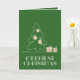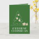 As palavras Feliz Natal em caracteres retrorreflectores, um esboço de uma árvore com ornamentos falsos de folha de ouro e presentes são apresentadas nestes cartões verdes de Natal dobrados. CORRESPONDENDO a itens na nossa loja.