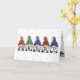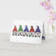 Cartão de Natal divertido e esquimético. Os gnomos têm sinais de FELIZ ortográfica.