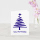 Cartão de Natal grego (Χριστουγεννιάτικη κάρτα) com mensagem de Natal em grego, Καλά Χριστούγεννα, Feliz Natal em grego e ilustração da árvore de Natal em cores da bandeira grega estilizada. Inclui mensagem tradicional de Natal grega dentro do cartão 'Καλά Χριστούγεννα'.