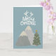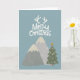 Um design minimalista de uma árvore de Natal com uma celebração de Natal na montanha nevada.
