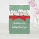 As casas seguem a rua em branco com um fundo verde-claro. O cartão e o pensamento estão embrulhados numa fita vermelha de cor clara. Cartão perfeito para terminar a época de Natal com este cartões de agradecimentos encantador para o presente! Esta placa não vem com uma fita real e é impressa em formato plano.