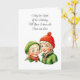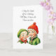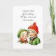 Cartão de Natal bonito. Adorável garotinho e garota de inverno verde que ai art.