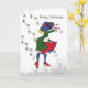 Cartão Feliz Natal Rapariga subindo passos de neve