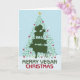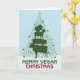 Este cartão de "Feliz Natal Vegano" apresenta uma árvore de natal com animais de fazenda.
