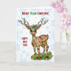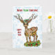 Este cartão "Feliz Natal Vegano" apresenta uma rena repleta de um padrão natalino.