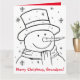 Feliz Natal saudações de que você pode colorir apresentando um boneco de neve ao estilo Frosty com um cachecol e chapéu de topo andando na neve. Um cartão bonito para um neto ou qualquer criança que você possa personalizar para ajustado suas necessidades.
