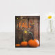 Este cartão rústico do campo "Feliz Outono para todos" tem três abóboras laranjas sentadas em frente a uma parede de madeira marrom escuro. Você também pode aumentar o tamanho do cartão para um cartão de tamanho 5x7 ou maior.