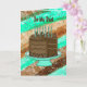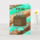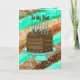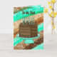 Cartão de Aniversário Feliz Teal e Marrom para um pai. Gráficos bonitos desenhados de bolo de chocolate, velas e presentes.