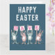 Cartão de Páscoa para alguém com um nome de 4 letras. Divertido cartão de Páscoa com ilustração de coelhos em rosa e azul. Os coelhos estão segurando cartões para soletrar o nome.