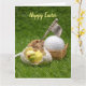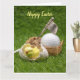 Cartão Feliz Páscoa de golfe com frango e bola de golfe