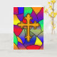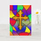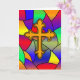 Linda cruz desenhada à mão com um cartão de Páscoa de fundo em vitral.