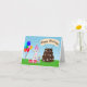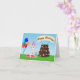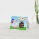 Este Poodle, que está vestindo uma festa vermelha cercada por balões coloridos, presentes envoltos, e um bolo de chocolate decadente de três camadas decorado com ossos de cachorro e estampas de pata, este cartão é perfeito para amantes de cachorros.