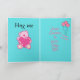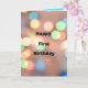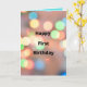 Castanho com diferentes luzes coloridas com Feliz Primeiro Aniversário preto escrevendo à frente. Dentro com ursinho rosa no lado esquerdo com Hug me dizendo. Dentro no lado direito com cor rosa escrevendo "doces sonhos para sua menina" com balões cor-de-rosa no canto. Dentro de fundo azul.