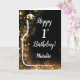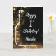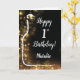 Cartão Feliz primeiro aniversario, preto e Dourado vinho