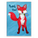 Essa raposa vermelha alegre quer te dar uma flor azul bonito! O texto diz: "Obrigado!" Personalize esta design clicando no botão "Personalizar!" e adicionando ou editando o texto!