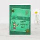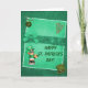Um belo cartão de saudação do Dia de São Patrício para o seu feriado irlandês favorito. Ele apresenta um dufo duma forma com um pote de ouro, um ouro harpa, um chapéu verde de cima com shamrock - tudo colocado sobre um fundo verde, naturalmente!
