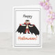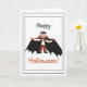Cartaz com meu trabalho de arte de um vampiro fofo tentando parecer assustador, com texto personalizável "Feliz Dia das Bruxas". Dentro personalizável.