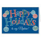 Um feliz cartão de feriados feliz baseado em texto para um sobrinho, com ornamentos e inscrições, cheio de vermelhos, azuis e verdes e bolinhas, esboço em branco sobre um fundo azul brilhante. Também há uma placa frontal personalizada com este design para o caso de você não encontrar uma placa para o destinatário específico que está procurando.