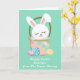 Personalize este cartão coelhinho de Felz pascoa bonitinho com o seu próprio texto personalizado com o nome dos seus filhos em branco. Este adorável coelho senta-se numa bonito cesta de Páscoa num lindo cartão verde pastel.