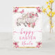 Cartão Felz pascoa de Lamas de Flores Rosa de Aquarela
