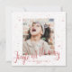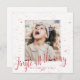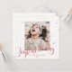Expresse sua alegria à família e amigos com este único e feliz Jingle All The Way em um moderno roteiro de caligrafia vermelha contra flocos de neve vermelhos, juntamente com suas fotos incríveis na frente e atrás deste cartão de Natal. Personalize facilmente os nomes, o ano e as imagens escolhidas.