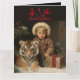 Natal Feriado Retro Child e tigre com rico tan-gold e dentro preto Personalize este cartão com os seus próprios nomes