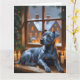 Uma cena de Natal emocionante, com um cão sentado pacificamente ao lado de uma janela, rodeado de luzes de Natal brilhantes. Essa design acolhedora e festiva captura o espírito da estação, perfeita para adicionar calor e charme a qualquer espaço. Ideal para amantes de cachorros e entusiastas de decoração.