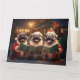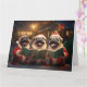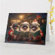 Nesse cativante trabalho de arte digital divertido, um grupo de Pugs de desenho animado toma o palco central cercado por uma festiva cena de Natal.