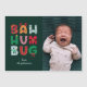 Cartão engraçado para um ano desafiador. Bah Humbug está envolvido em designs de Natal alegres. Mensagem humorística para os feriados. Adicione sua própria foto.