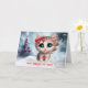 Um cartão de Natal personalizado com um gatinho adorável na neve, uma árvore maravilhosamente decorada, e a opção de personalizar o nome no cobrir, fazer-o especial para alguém!