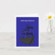 Cartão de Natal grego azul e branco. A decoração das embarcações de Natal é uma tradição simbólica adorável na Grécia, em que os navios de férias são iluminados nos portos e nas vias navegáveis, especialmente nas ilhas gregas. Aqui está um cartão original de Natal de arte em grego, mostrando um navio à vela iluminado no céu noturno. Palavras no fronte, digo α legal σ falso ε Natal α, Grego para Merry Christmas Clique no botão personalizar para adicionar seu próprio nome no dentro.