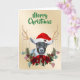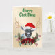 Uma cabra linda de pígmy com seu chapéu de Papai Noel e chifres adorados com Enfeites de natal listrados, esta é a minha Savana, cercada por uma coroa de férias de poinsettias vermelhas, cones de pínus, verde e um grande arco vermelho. - Arte original ©goatLady GetYerGoat™