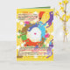 Imagens e texto, com uma mensagem sobre o amor e uma física engraçadas, positivas! Há umas imagens na parte dianteira, parte dianteira para dentro e para trás. A mensagem no interior da parte traseira lê: "Desejando o ame, alegria e gravidade!"