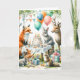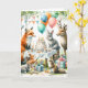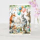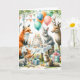 Celebrar um aniversário caprichoso com esta ilustração da "Festa de aniversário da floresta", que inclui animais da floresta como uma raposa, coelho, veado e esquilo num estilo de aquarela macia.