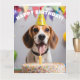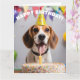 Cartão de aniversário engraçado de Beagle para qualquer idade ou indo pela quantidade de velas por um ano. Também pode ser para qualquer outra celebração. O texto nos lados frontal e inverso pode ser alterado.