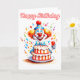 Esta placa vibrante tem um palhaço fofo numa festa de aniversário. Sinta-se à vontade para personalizar este cartão com seu texto para torná-lo exclusivo e do tipo.