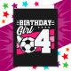 Esta design de festa de aniversário de futebol é perfeita para uma festa de aniversário de tema de futebol de 4 anos de idade para comemorar seu quarto aniversário! Excelente para crianças que adoram jogar futebol, assistir futebol ou futuros jogadores de futebol! Possui uma bola de futebol em um gráfico de campo de futebol com número 4 para o 4º aniversário de uma garota.