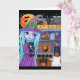 Cartão Festa de Halloween Gata Preta Bruxa Fofo Casa Asso